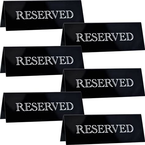 6 Pieces Plastic Reserved Table Sign Table Tent Wedding Guest Reservation Seat Sign For Restaurant Wedding Chairs(7.9 X 2.7 Inches,White Words Black