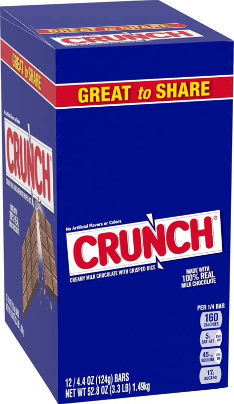 CRUNCH Giant Candy Bar, Creamy Milk Chocolate With Crisped Rice, Great For Sharing, 12 Count Box, 4.4 Oz Each