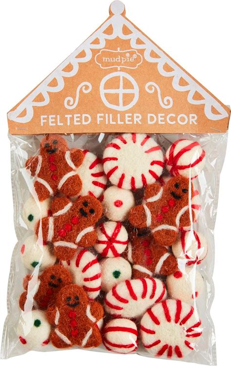 Rust & Cinder Gingerbread Man & Peppermint Felted Bowl Filler (Set Of 16)