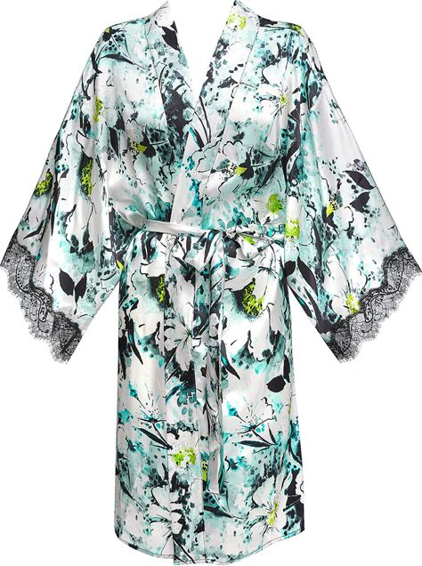 Womens Medium Length Silk Blend Floral Kimono Robes