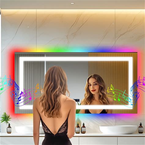 Extra Large 47/40in Smart LED Illuminated Fog-Free Bathroom Mirror Bluetooth Speaker Digital Display