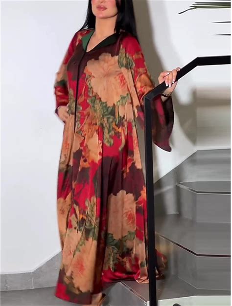Women's Floral V Neck Maxi Dress Long Sleeve Summer Spring