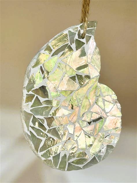 Iridescent Seashell Stained Glass Suncatcher, Pearl Shell Window Hanging, Coastal Sun Catcher Decor