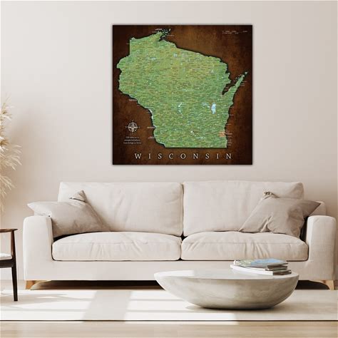 Wisconsin Push Pin Map, Personalized Wisconsin State Map For Gift, Upscale Canvas Map For Marking Travels, Map Wall Art Gift With Pins