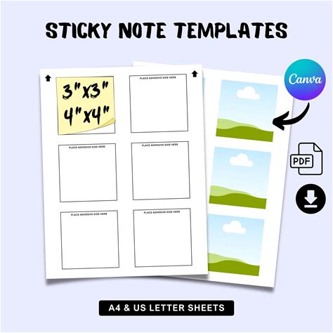 Sticky Notes Template Bundle | 3X3" & 4X4", Canva And PDF (Digital Download)