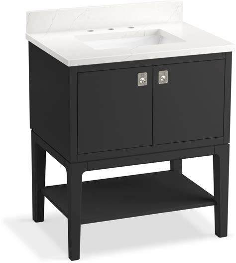 Kohler K-35025 Seagrove By Studio Mcgee 31" Free Standing Single Basin Vanity Set With Cabinet And Quartz Vanity Top Ferrous Grey Bathroom Storage