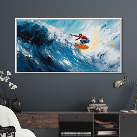 The Lone Surfer | Large Stretched Canvas, Black Floating Frame Wall Art Print | Great Big Canvas