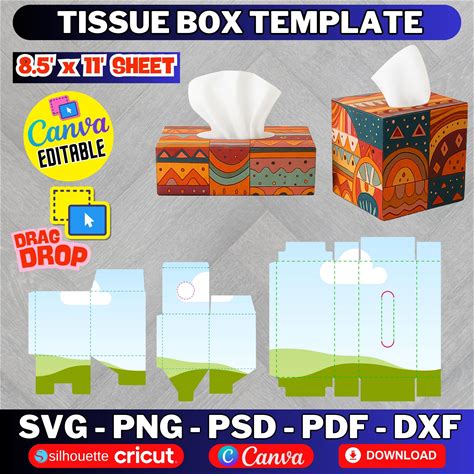 Tissue Box Template, Tissue Box Svg, Gift Box Template, Ms Word, Canva, PSD, PNG, SVG, Dxf, Canva, A3 Sheet, Printable, Instant Download