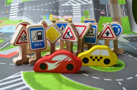 Wooden Traffic Signs Set, Montessori Toy Cars, Road Play