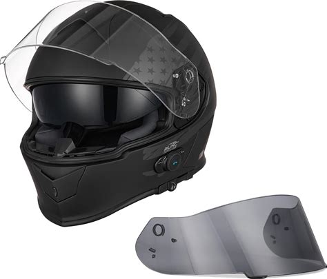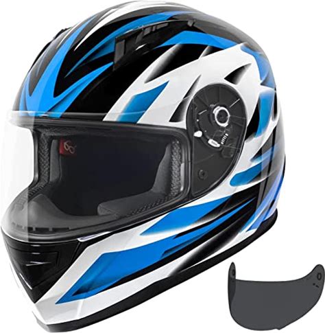 VCAN VX Lightweight Full Face Motorcycle Street Bike Helmet With Extra Tinted Visor, Coolmax Technology OTG Ready, DOT ECE 22.05 Approved(GLOSS BLACK STREAM BLUE/Medium)