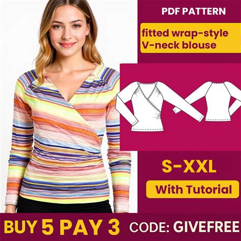 Top Sewing Pattern | Wrap Top Pattern | Women Sewing Pattern | Blouse Pattern | Sewing Patterns Women Blouse | Tie Top Blouse Women Pattern