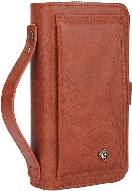 Casebus iPhone 12 Pro Wallet Case - Flip Folio - Leather - Zipper Card Slots - Crossbody Strap - Detachable - Brown