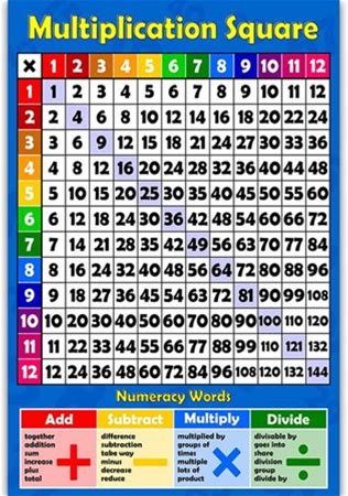 Math Learning Poster Addition Tables Subtraction Tables Multiplication Tables Division Tables For Toddlers Kindergarten
