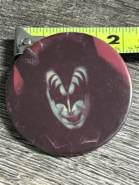 Kiss Button Pin Badge Destroyer Gene Simmons Face Red Back Vintage Kiss Aucoin. Novelties.