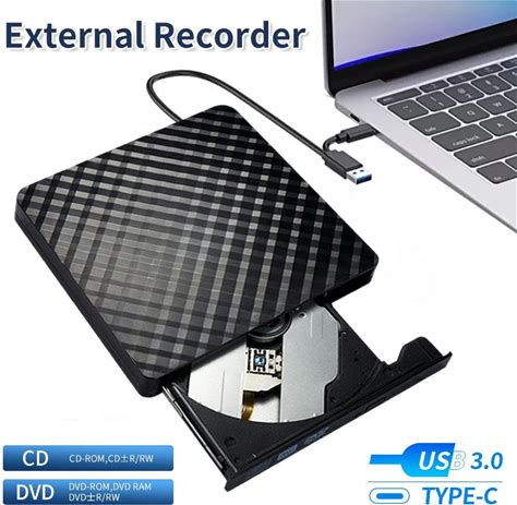 External CD DVD +/-RW Burner USB 3.0 Type-C BD/DVD/CD ROM Reader Reader Lightweight DVD Player Drive