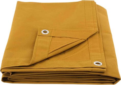 12' X 16' Tan Canvas Tarp With Grommets - 12 Oz Polyester | Water Resistant Heavy Duty Canvas Tarps For Canopy Tent, Roof, Camping, Woodpile