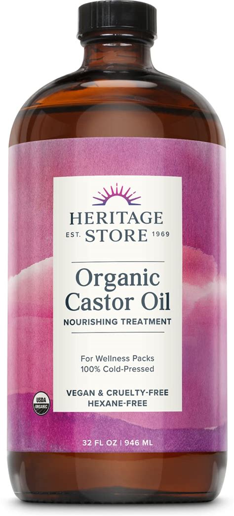 HERITAGE STORE Organic Castor Oil - 32Oz Glass Bottle - Nourishing Treatment For Hair And Skin Care - Eyelash Serum For Eyelashes And Brows - Cold