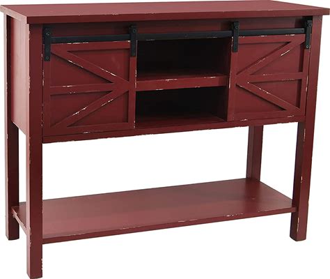Ehemco Antique Farmhouse Console Table With Sliding Barn Doors And Bottom Storage Shelf, Antique Red
