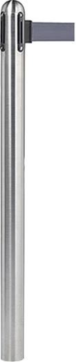 American Metalcraft RSRTRVSGYC2 40" Brushed Stainless Steel Crowd Control / Guidance Stanchion Post With 84" Gray Retractable Belt