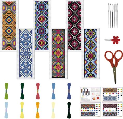 FREEBLOSS 6 Set Cross Stitch Bookmark Kits Hand Embroidery Kit For Beginners Traditional Decorative Patterns Counted Cross Stitch Kit Full Cross