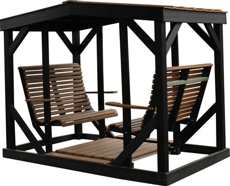Amish Antique Mahogany On Black Poly Color Double Glider Bench In Stock And Ready To Ship