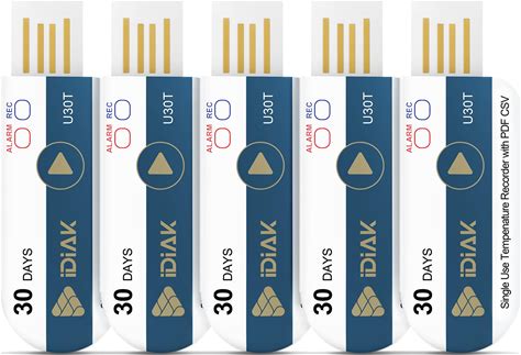 Idiak U30T 5 Pack USB Temperature Data Logger Single Use Temp Recorder With PDF And Excel Recording Thermometer 14400 Points High Accuracy 30 Days