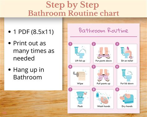 Step By Step Bathroom Routine And Potty Training Chart And Cards, Toilet Training Visual For Girl, Printable