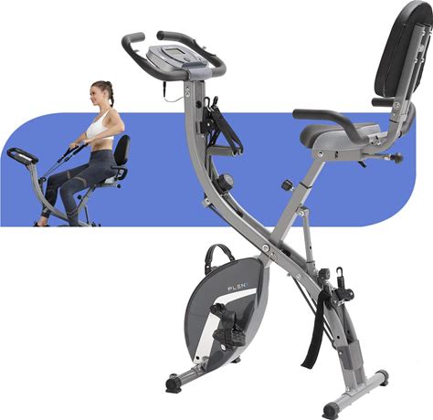 PLENY Foldable Exercise Stationary Bike Workout, 5-In-1 Folding Indoor Cycling Exercise Bike, Magnetic Upright Workout Bike With Arm Exercise Resistance Bands And Ankle Strap For Home Gym