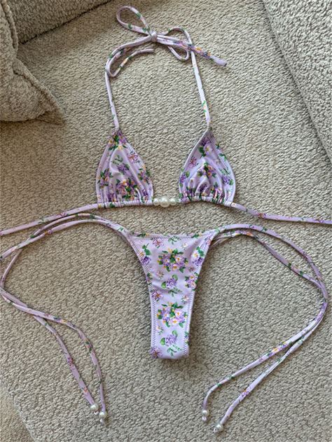 Sexy Micro Bikini Swimwear Women Push Up Bikini Set Luxury Print Halter Pearl Beachwear - Purple L | Inspire Daily Merch