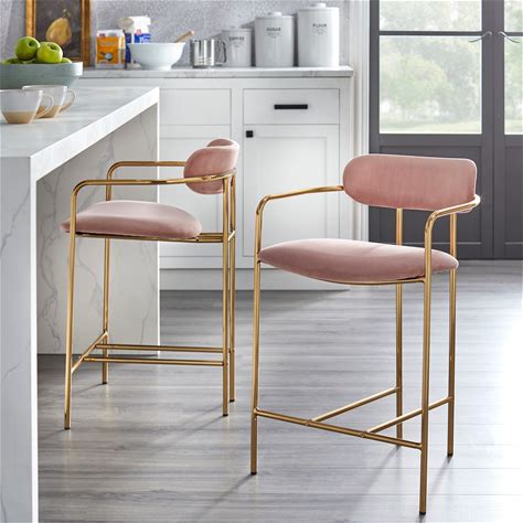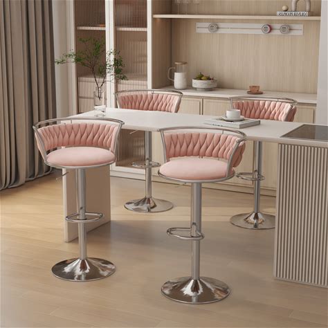 Bar Stools Set Of 2, 25.59 in. Adjustable Metal Barstools Counter Height Stools, Velvet Kitchen Island Stools, Pink