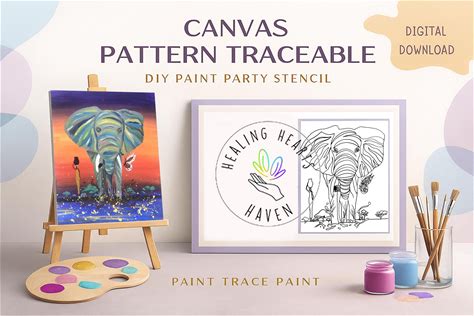 Canvas Pattern Elephant Traceable For DIY Paint Party Digital Download