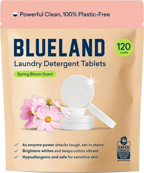 BLUELAND Laundry Detergent Tablets, 120 Count, Spring Bloom Scent, Plastic-Free Eco-Friendly Pods, Sheets, Liquid Alternative - Safe For Sensitive
