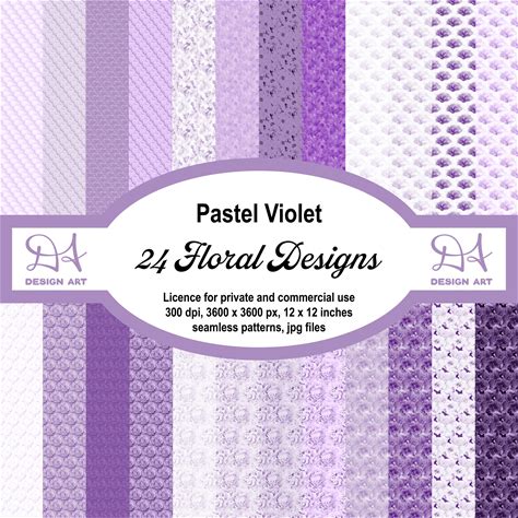 24 Floral Designs In Pastel Violet, Seamless Pattern, 3600X3600 Px, 300 Dpi, 12X12 Inches, A Digital Download