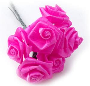 Handmade Ribbon Roses, 0.25-Inch Rose, 12 Roses, Fuchsia