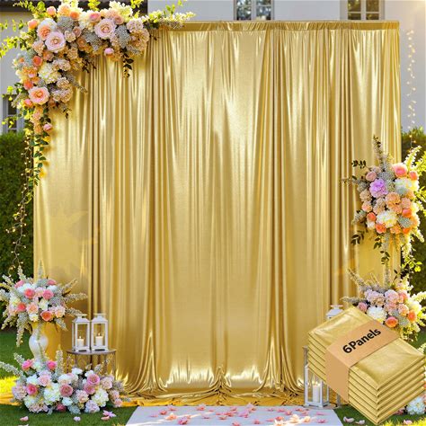 Leegleri 30x10ft Thick Gold Glitter Backdrop Curtain Panels For Parties, Wrinkle Free Sparking Sequin Backdrop Drapes, 6 Panels 5x10ft Shimmer Photo