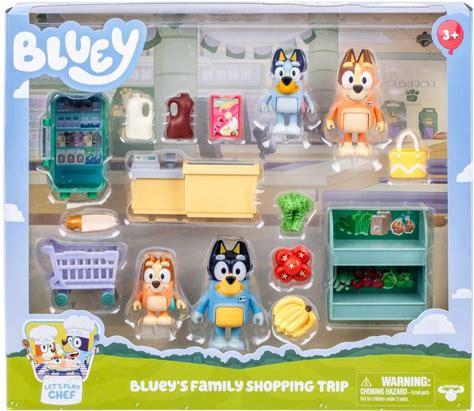 Bluey Let's Play Chef Family Shopping Trip Mini Figure: Includes Bandit, Chilli, Bingo & Accessories