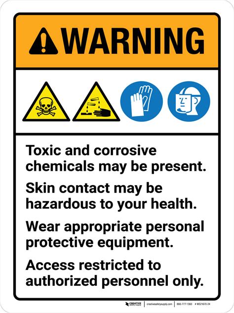 Warning: Toxic And Corrosive Chemicals May Be Present Skin Contact May Be Hazardous Portrait - Wall Sign