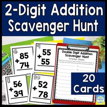 Two Digit Addition Scavenger Hunt: 20 Addition With Regrouping Task Cards