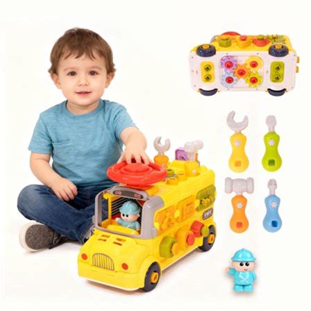 Savejoy Baby Learning Toy Bus,Assemble Busy Toys Construction Building Vehicle,Engineering Truck Educational Gift For Kids Age 3