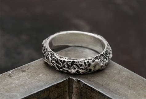 Volcano Ring For Him In Sterling Silver. Rustic And Textured Bands. - Alternative Engagement Rings.