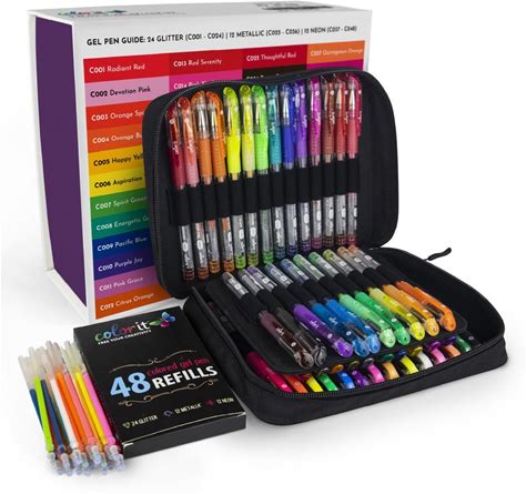 Colorit Gel Pens For Adult Coloring - 96 Pack With 48 Premium Gel Pens & 48 Refills With 1 Travel Case - Vibrant Colors For Journaling, Writing,